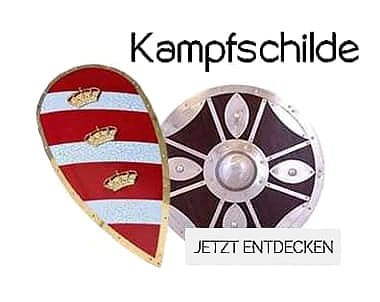 Der Mittelalter Schild ist ein vom Kämpfer getragener Schutzgegenstand zur Abwehr von Angriffen, und gehört zu den ältesten Schutzgegenständen. Historische Wandschilde oder auch ein Wappenschild sind bestens geeignet zur Schaustellung an der Wand oder zur Gestaltung von Räumen bzw. Gegenständen.