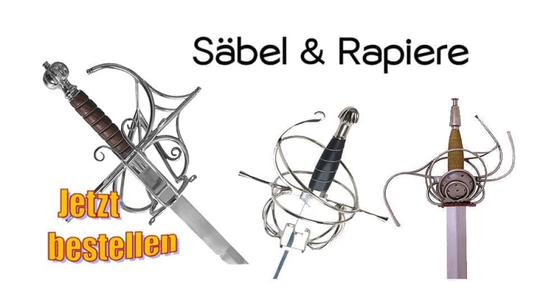 Der Säbel wird als leichte Stich und Hiebwaffe benutzt und ist einseitig geschliffen und verschieden stark gekrümmt. Die leichte Kavallerie verwendete den Säbel als typische Waffe. Mit Rapier bezeichnet man seit dem 16. Jahrhundert vor allem schwere, überlange Degen mit einem aus Eisen geschmiedeten Korb, der mit ringförmigen Spangen versehen ist, um Daumen und den aufliegenden Zeigefinger zu schützen